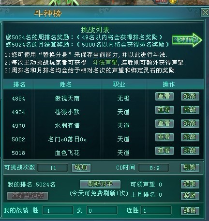 (3)建议描述:斗完后,斗神榜领不到声望