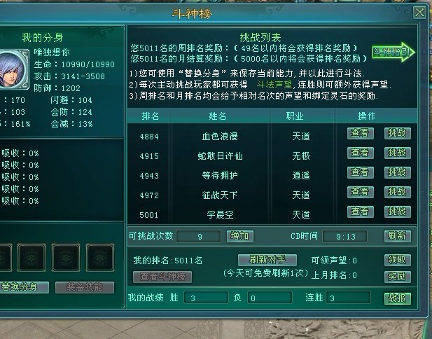 6)适当降低天道的职业优势,以期达到职业相对平衡,现在游戏天道职业太多,占了80%以上,可以看出职业已经严重不平衡;