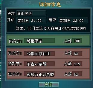 建议:建议适当开放宗门人数上限,上限人数按宗门等级增加或者升级宗门某建筑来增加人数,宗门人数也别超过120人(现在人数上限100人的20%)。人太多卡也不好玩。