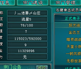 2、上次更新后,大部分宗门安定度下降为9,而且交宗门任务也不上升。