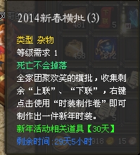 先给你们问声好,*新年做衣服的任务道具 “上联 下联 横批” 的有效期限是30天,