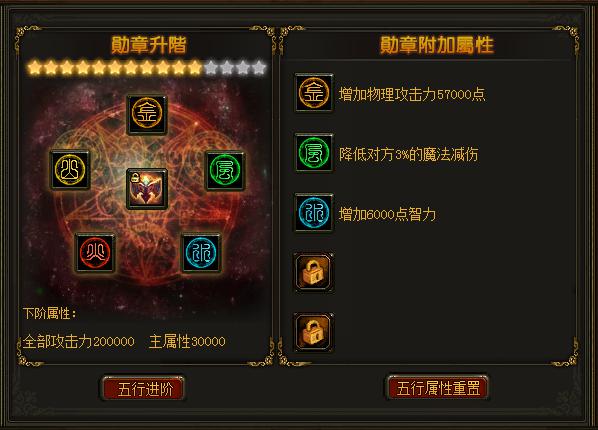 1、使用五行珠即可打开勋章加持升阶界面