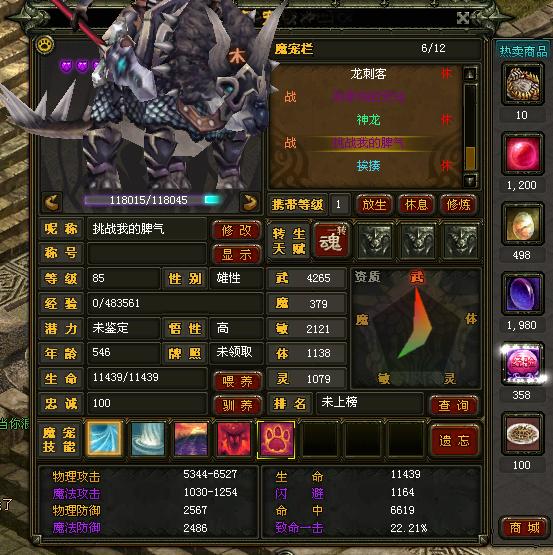 为什么会发这个帖子,大家请看我的6孔帝套防御力是6000出头一点点,而且还是加上好友加成的5%。否则6000都不到,而人族剑士80帝套,不加好友加成都是9000+而且78级技能还是加防御的。昨晚我和一人族80剑士 6孔帝套角斗PK,他元素减伤30%,双方都是手动加力量专注的,血量差不多,攻击力人族剑士比我稍低。我两个宝宝大家也看到了,一个是7200多攻击一个是6500多攻击,对方两宝宝都是5700多攻击的龙战士。但是杀到最后,我根本杀不过装备和宝宝比我稍微垃圾一点的人族剑士。 干不过80的人法,我忍了,谁让官方说,人法是专门克制兽战的呢,但是,装备和宝宝比我垃圾一点的人战我也杀不过,那我还要这个号干啥。太失望了,真的是失望透顶!!!