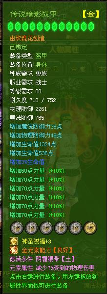 全身6孔帝套 元素全部激活,除了神器相关。元素减物伤35%,镶嵌的石头有点问题,本来准备全部换精致的力量,因为攻击相差不大,还对血量影响比较大。但是石头比较难整 所以暂时就把装备先弄成这样。