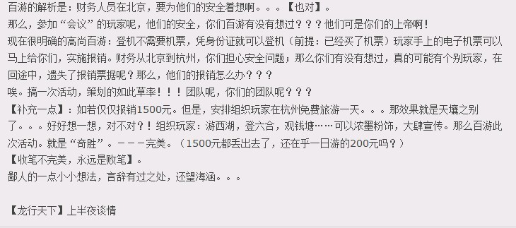 不管官F出于何种目的去举办一些活动,我们为何不用平常心去对待呢.你有你的发言权,人家有人家的做事权利.既然还在玩这个游戏,还在上这个论坛.说明我们还是关心着这个游戏.一些无聊的言语只会给自己带来无名的烦恼......(个人看法)