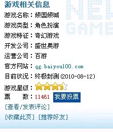1、进入投票地址:点击页面中“我要投票”(蓝色方框位置)进入投票页面为《倾国倾城》投票