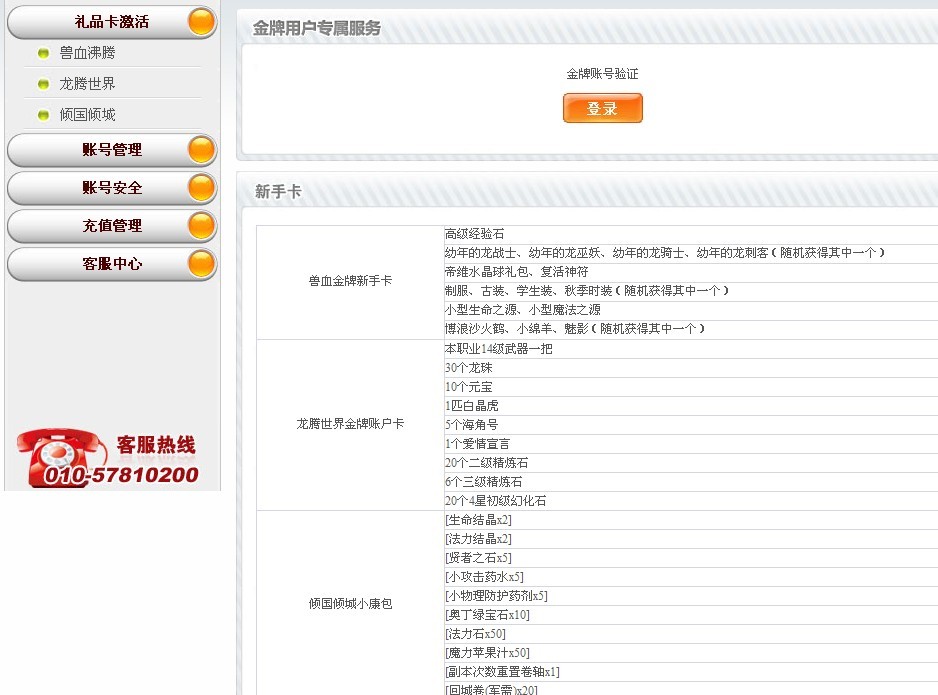 领卡步骤:方法一:成功注册或者绑定金牌账户→登陆百游通行证([url]http://acc.baiyou100.com/[/url])→我要充值→左边礼品领取→金牌账户礼品卡领取