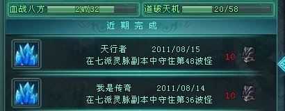 完成七派灵脉48波.可是没提示成就,你们可以查记录..