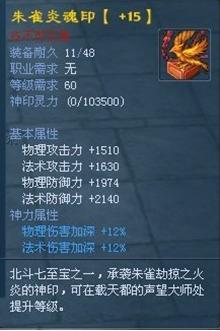 如:朱雀炎魂印【+15】属性如下: