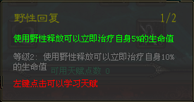 ,20%伤害降低持续6秒,天赋加血是使用 野性释放 技能后立即治疗10%自身生命值