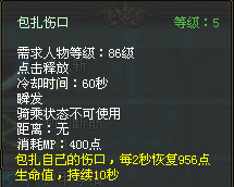 技能 60秒冷却时间 每2秒增加956血持续10秒,天赋加血是使用包扎伤口回复生命值提高,相当于体质的100%
