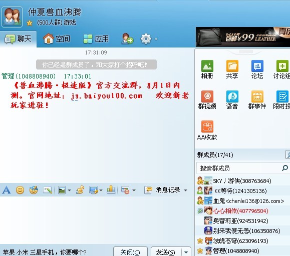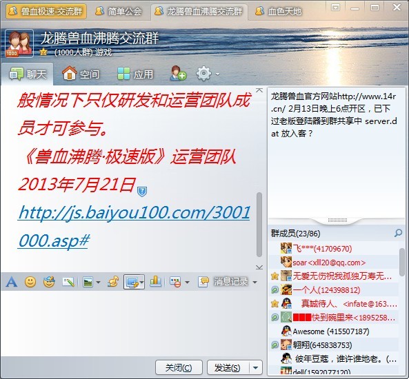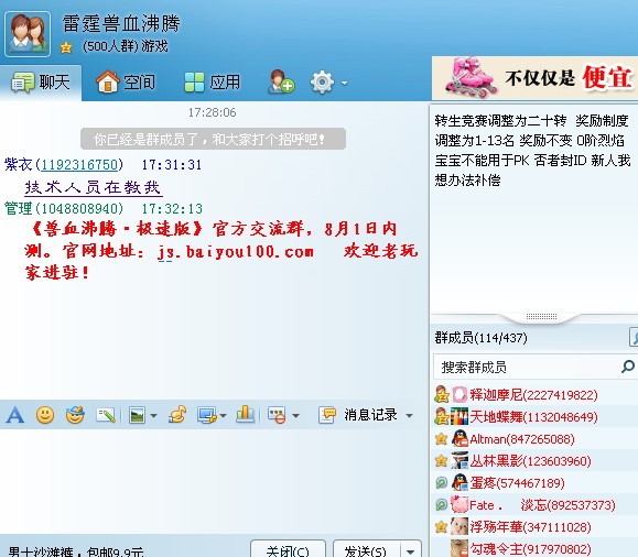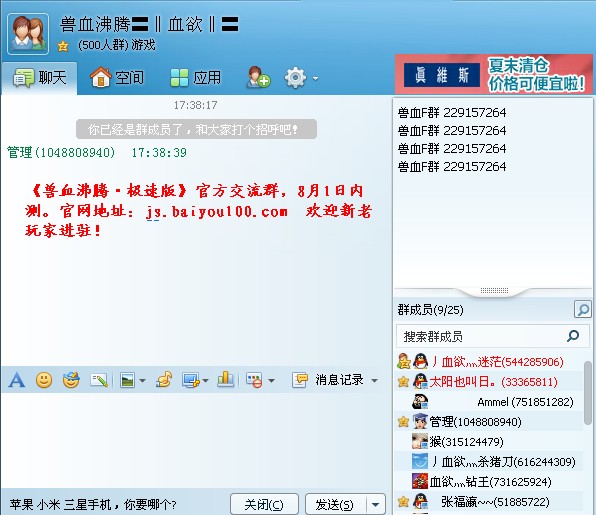 玩兽血沸腾一年多了,升级总比别人慢。这回出的极速版很期待 。 仲夏的号 仲夏之光 qq451998762
