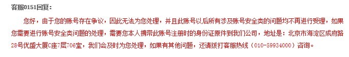 这就是你们给我的回复。我的账号存在争议你们就给封停吗?你算是一个能让我信服的理由吗?