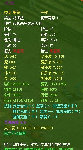 我这个宝宝老是出问题,后面2个技能开过2 次洞了 都会无缘无故消失,今天转生2转后发现后面2个技能又没有了,给我个说法。这是宝宝图片,一个是转生前面的,一个是转生后面少2 技能的。