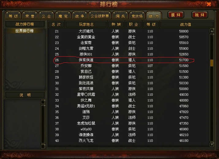 就这战力表中最后一名有玩家,从关年前一直开始用,举报他,迅雷不理。