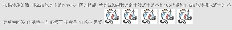 如果不是他回答我说可以转移技能我怎么会转族 我现在又花了210人民币重新学技能 版主队长你去问问萧老板 他是怎么回答我的 我问他转族技能能不能转对应的种族技能 他很确定的告诉我可以 我已经载图了 我会一直关注萧老板的 只到萧老板出来正面回答我的问题