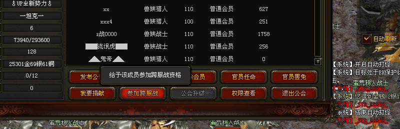 童鞋你们工会是会长副会长都没法选参战人员吗,公会名称是什么,