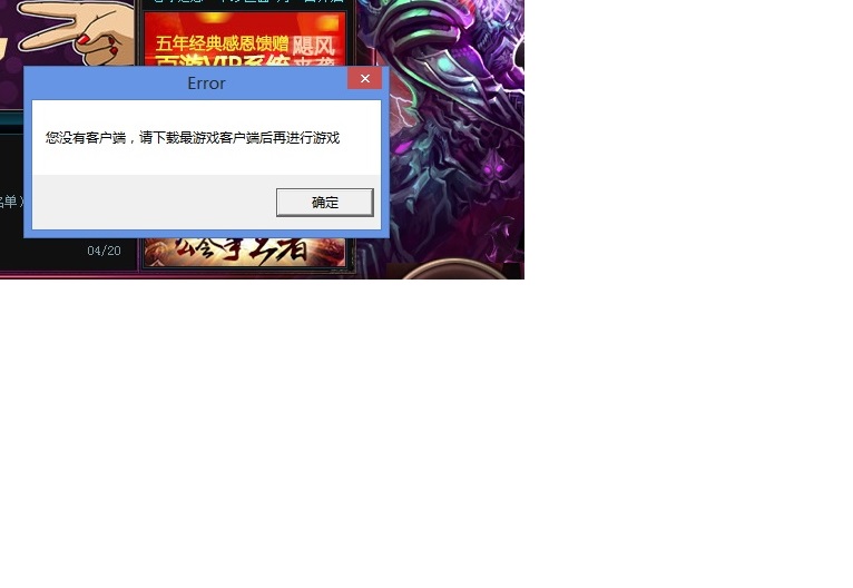 启动客户端 更新游戏后 系统提示:您没有安装客户端 求解!!!!!!!