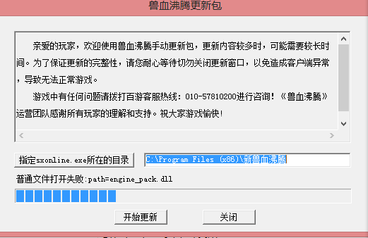 你在任务管理器里看一下有没有兽血沸腾这个游戏的进程,然后结束一下再重新更新试试。如果实在不行的话,童鞋你完全卸载之后,重新在官网下载下吧,然后换一个盘符进行安装。