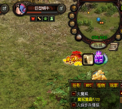 新区,兽族白岭山脉火魔熊地图,就剩两只怪了,东北行省还有个怪就一只了。720只怪的任务,你想让我打几天?赶紧维护吧
