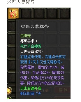 网页商城出的那个灭世天尊称号7天属性效果。。其实只有一天。一天就过期。。摆明*