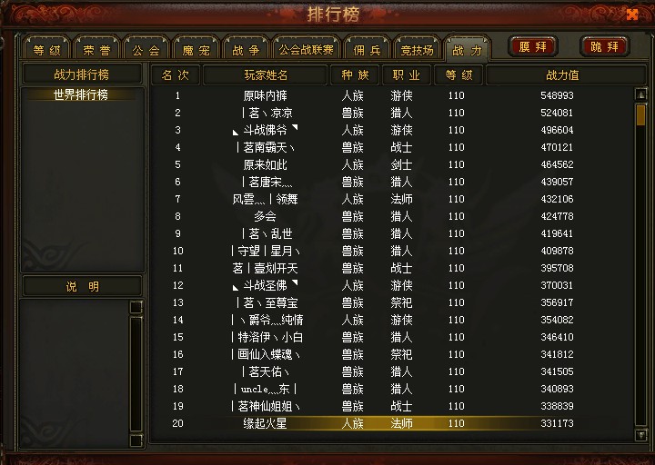 看下这战力榜前20名 13个兽族7个人族 这样兽族都能弱族 无语......