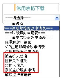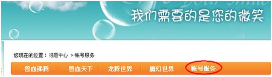 登录成功后,点击左边的问题提交入口,您将会看到帐号服务下: