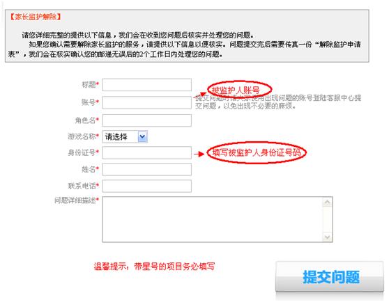 服务分类当中有两项服务项目:家长监护申请和家长监护解除,服务时间为2个工作日(不含法定节假日、周六日)点击提交问题如服务项目:家长监护申请