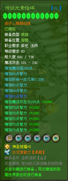 关于攻件元素 楼主是魔攻+忽视 本人是全忽视 其实我也一直在考虑这个问题 法师由于有攻速的劣势 忽视效果是远不如物理职业的(尤其猎人和游侠) 可是没有忽视也是绝对不灵 到底是全忽视好还是魔攻+忽视好 这个问题一直很纠结 玩法师的就不用考虑抢BOSS了 做装备一切为了PK 不知道楼主有没有更深刻的理解 呵呵