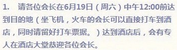 要求19号中午12点前到达预订酒店,可想而知,就是分配住宿的问题了。【很有人道主义精神】!!