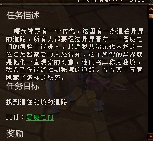 在曙光神殿 大地图显示有个“通往命运之境第一层”的传送门表示,“恶魔之门”就在那里xierqi2008 发表于 2010-6-24 10:52:00