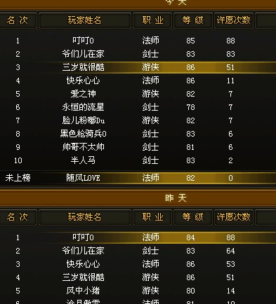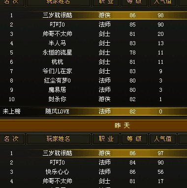 网通7区. 奖励排行榜. 守护荣誉许愿人气出现卡榜... 持续快一周了...有图为证... 每天过12点.更新以后,, 排行榜 没人 ..但是没过几分钟.. 他们几个就自动上榜.. 人气 90多个 许愿80多个 .. 这种卡榜 还叫我们这些人咋体验排行榜的乐趣?请速度解决 好么??? 别弄这么多BUG 好不好..