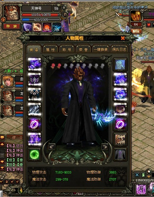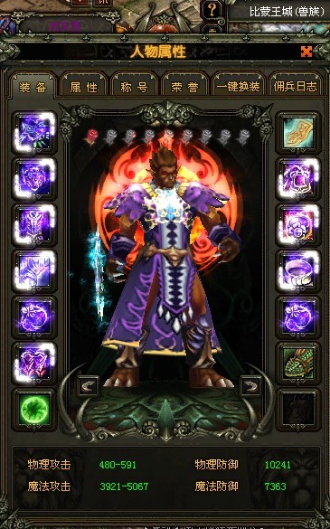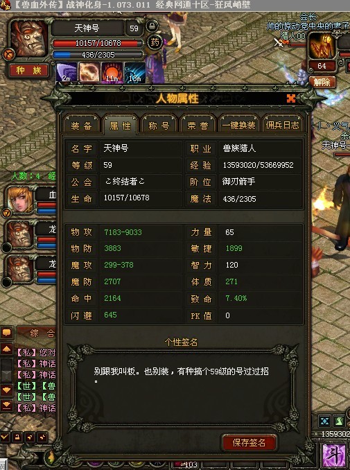 昨天我也弄了下小号 59游侠 一身垃圾 3孔白神器 满状态攻击一万出头 无即时状态 血有13000