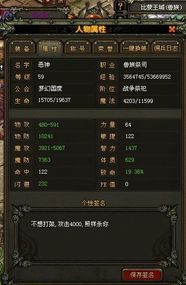 哦,看来我59号,血23000,攻8000,防7000,只能算是垃圾了