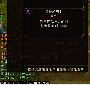 点击和他交谈什么,点一百下就OK 紫色称号属于你。