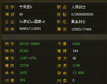 不错 我的90怎么才7。6W的血啊 属性没改好 差距也太大了~~看样子还得改装备