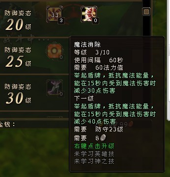 看图片 20级的辅助防战技能 15秒之内减少魔法伤害那个 技能时间间隔60秒 能不能改成持续60秒之内减少魔法伤害 持续60秒的? 和10级的技能 叫格挡的 一样 60秒之内减少物理伤害 持续60秒的 你们现在是发个技能坚持15秒却要等待60秒 这样对于防御基本没什么用啊 !~希望斟酌!~