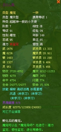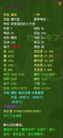 大家要看他的成长。第一张图是1星期前的。第2张是最近的,他BB成长,有问题,资质加了,成长却少了。。这样搞10W攻击都给人搞出来了