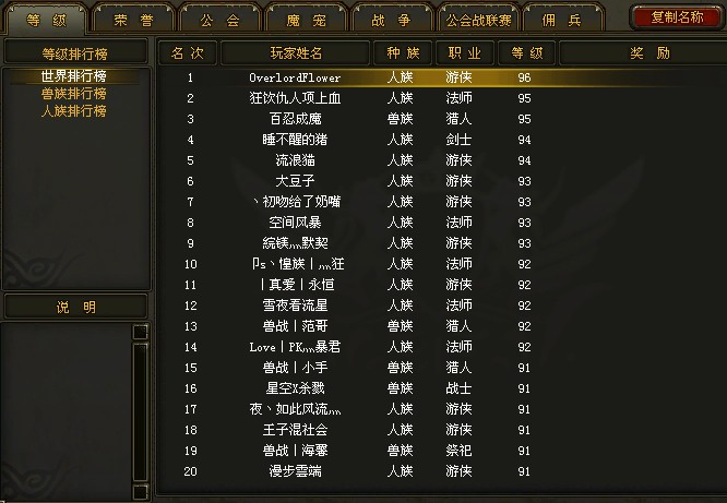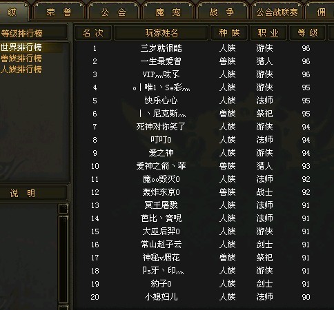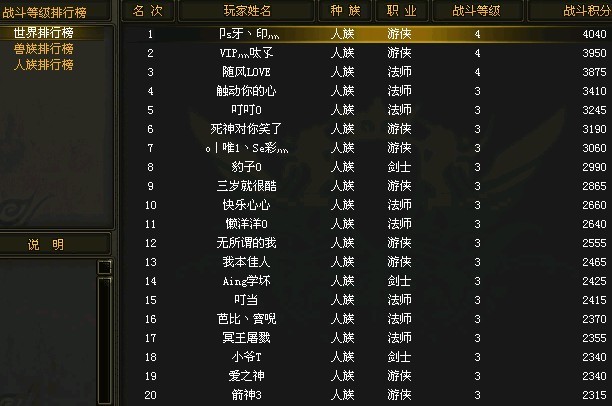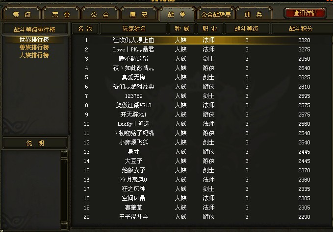 再看图 战斗积分前20名可以说兽族一个都进不了,不能不说明问题了。