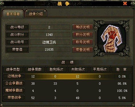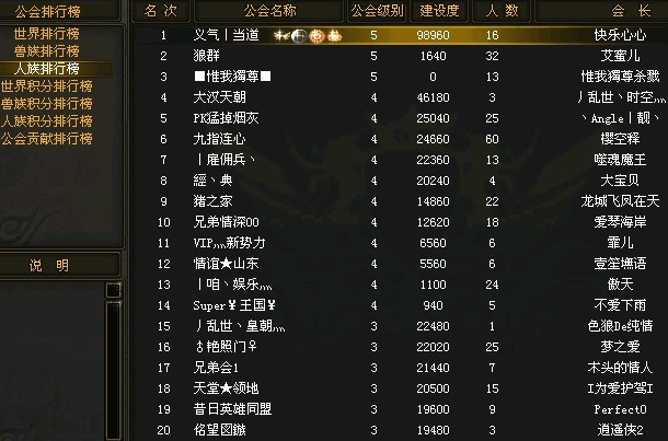 再看 工会战,我们区兽族本来是个5级工会,后来天天跟人族第一大工会遭遇,一个月下来工会战连个前三、都进不去,兽族越来越弱,后来兽族大号集体换会,迁到一个4级工会才避免了 此次惨败的遭遇,所以看图工会战是赢多输少 实际上兽族牺牲的不仅仅是工会战,那是兽族的荣誉。