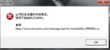 下载数字版 顺利激活 点开始游戏 出现 “必须的安全模块未被激活 程序不能被执行9000”