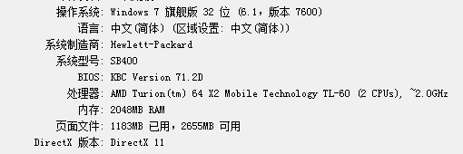 CPU:Intel Core2 Duo 2.3Ghz或AMD同等性能芯片及以上