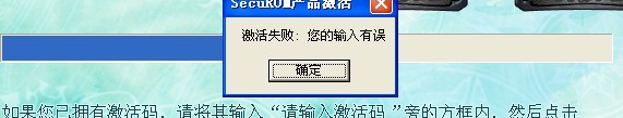 出现此提示是由于您的激活码输入错误,如果您是在线激活的话,那么请您留意输入“-”符号,否则无法输入正确。