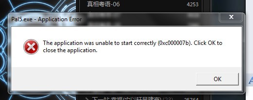 the application was unable to start correctly(0X000007b). click ok to close the application.