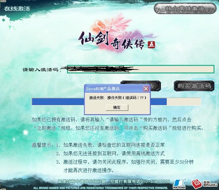 我想问下 激活为什么会失败 显示的错误代码为77..是怎么一个情况 到底还可以激活不