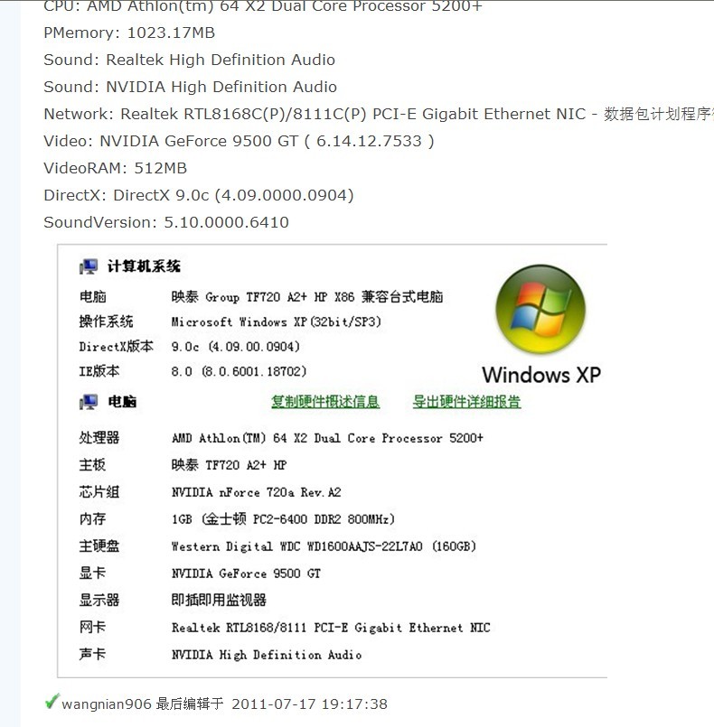 按照惯例,我先将本游戏的所有配置告知您一下: