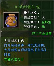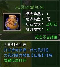 惊喜二: 礼包名称:紫色仙品九灵剑裳礼包