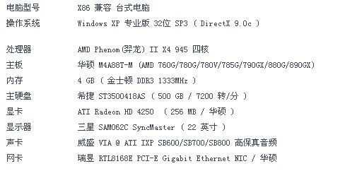 按照惯例,我先将本游戏的所有配置告知您一下: