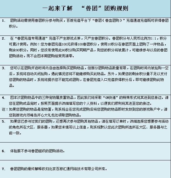 想要参加我们本期的团购活动吗?俗话说的好,没有规矩不能成方圆,我们的团购活动当然也有自己的团购规则!掌握了这些规则,保证你可以一定可以马上玩转兽团!