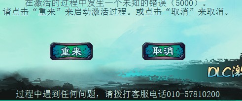 第三次,反激活游戏,重新安装游戏,激活游戏成功,激活dlc自动关闭,在打开,显示错误5000